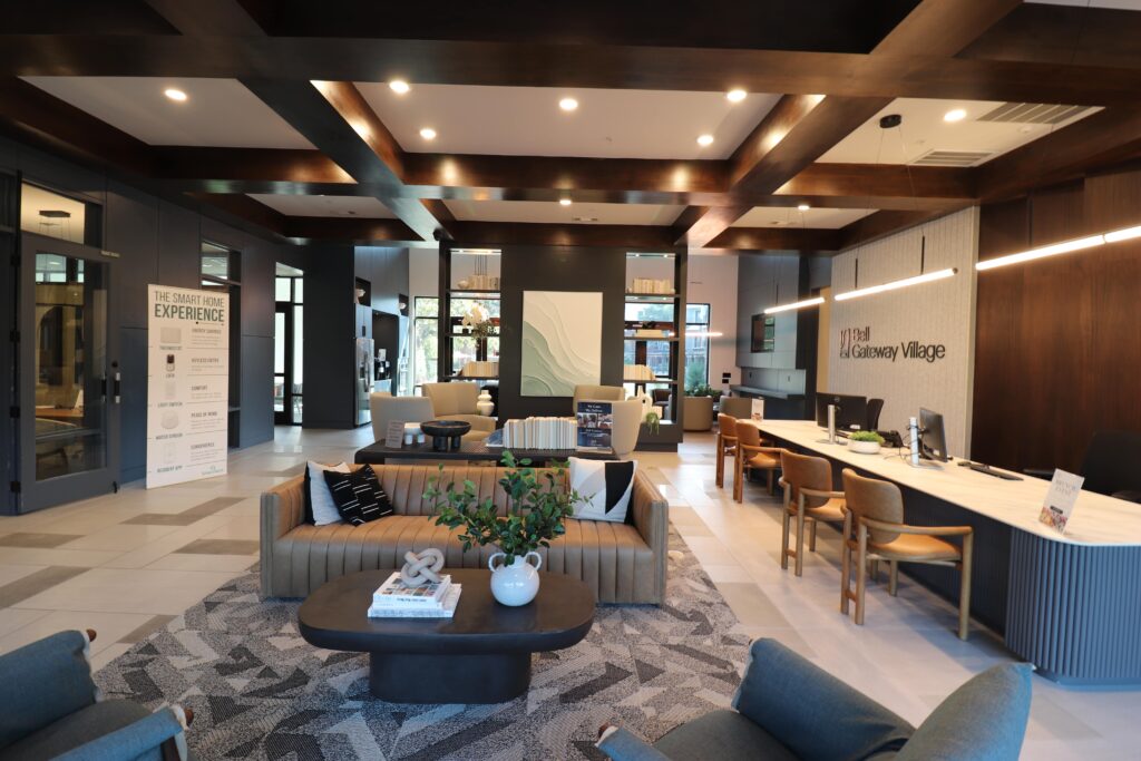 The result is a fully refreshed community hub designed to improve workflow for leasing staff and provide residents with a modern, comfortable space to work and connect.